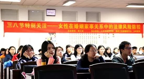 邓定远老师以一组司法统计数据掀开了本次活动的序幕。数据表明,女性在婚姻家庭关系中仍处于弱势地位。随后,嘉宾们针对“婚内夫妻财产关系”与“如何妥善处理感情破裂和离婚”两个专题开展了生动精彩的讲解。