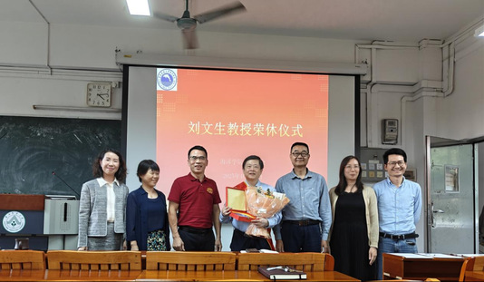 仪式最后,学院领导与刘教授合影留念,定格下这一温馨瞬间。此次荣休仪式不仅是对刘教授四十年教育生涯的致敬,更传递了学院 “尊师重教、薪火相传” 的优良传统,也激励着全体教职工以老一辈教育工作者为榜样,坚守育人初心,为学院发展与人才培养贡献更多力量。(文图:海洋学院工会)