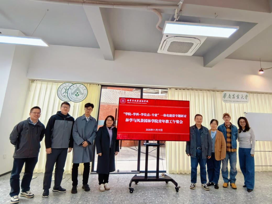 为深入贯彻落实学校关于深化教育教学改革、优化学科专业布局的总体要求,推动学院内涵式高质量发展,2025年11月19日,林学与风景园林学院在轻松融洽的氛围中,成功举办以“学院-学科-学位点-专业一体化建设”为主题的青年教工午餐会。学院院长何茜教授,分管教学副院长高伟教授,工会主席邱权副教授,院长助理胡盛劼、莫其锋老师,风景园林教研室主任古德泉、潘建非、李剑三位老师以及教学科研办主任叶晓燕老师等出席会议,与青年教工代表共聚一堂,共商学院发展大计。