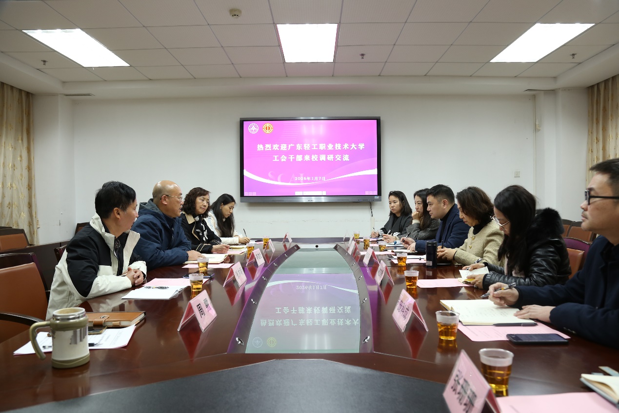1月7日,广东轻工职业技术大学工会高海燕等一行7人来我校开展专题调研和交流活动。
