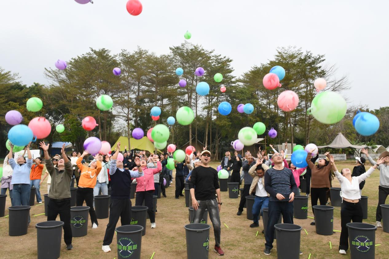 活动在轻松愉快的氛围中拉开帷幕。在专业教练的带领下,教职工通过随机分组迅速组建团队,并投入到趣味盎然的热身环节。首个协作项目“有氧球挑战”迅速点燃现场热情,老师们口号整齐、动作协调,在互动中展现出高度的团队默契与协作精神。