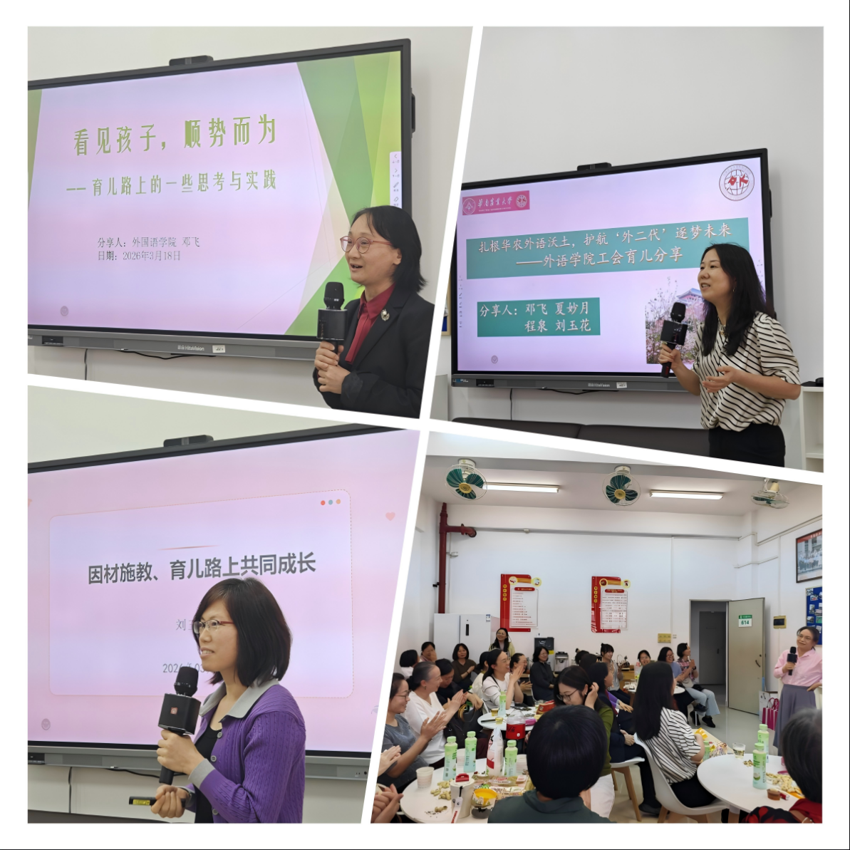 3月18日(周三),外国语学院工会在614室成功举办首场教职工育儿经验分享会,吸引四十余位老师参与。现场氛围专注而热烈,交流融洽。